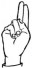 На ћирилици написано ВЕСЕЛИНКА ОБУЋИНСКИ састоји се из 18 слова [?]. Исписано ћириличном једноручном азбуком за глувонеме:
